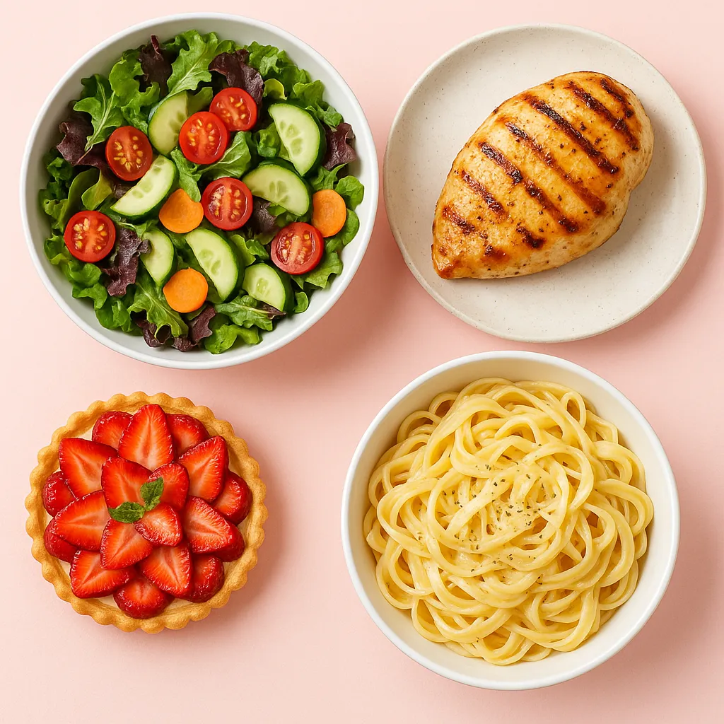 - Realista: imágenes fotográficas limpias y bien iluminadas (como comida o productos), muy llamativas para tiendas digitales.