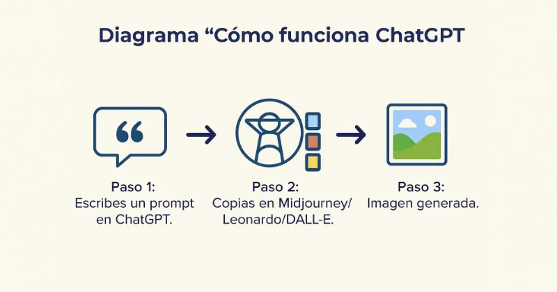 Usar ChatGPT junto con herramientas de generación de imágenes es sencillo si lo integras en tu rutina creativa. Aquí tienes un proceso paso a paso: