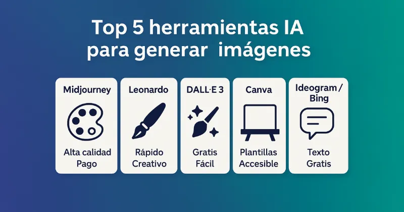 En este artículo descubrirás las 5 herramientas que mejor se combinan con ChatGPT para dar vida a tus ideas visuales, incluso si nunca has diseñado antes.